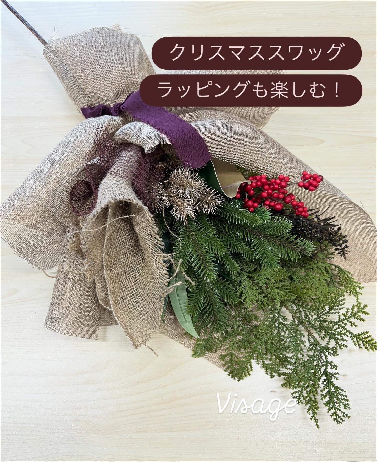 フレッシュエバーグリーンを自然素材でラッピングした、クリスマススワッグの1dayレッスンです